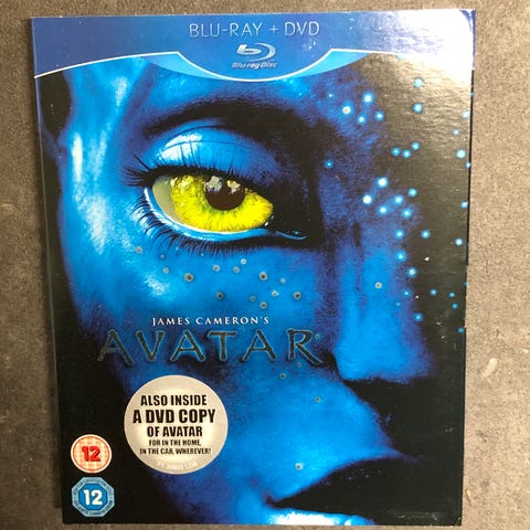 Avatar Blu-ray film. Utgivelse av James Camerons spillefilm «Avatar» på Blu-ray-format. Omslaget viser filmens originale coverdesign. Egnet for avspilling på Blu-ray-spillere som støtter regionen angitt på omslaget.