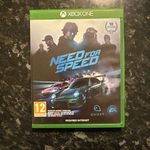 EA Need for Speed Rivals spill for Xbox One. Fysisk utgave på disk i original grønn Xbox One-eske. Omslaget viser at spillet er PEGI 7-års aldersgrense. Inneholder kjørespill med politi- og racingelementer. Esken inkluderer spillplate og trykt informasjon/brukerhefte slik det vises på bildene.