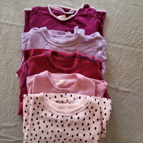 Fire stk Reflex ullgenser for jente i størrelse 98/104. Genserne er laget i ull og kommer i flere farger og mønstre, blant annet ensfarget rød, ensfarget rosa, stripete og mønstret. Alle har lange ermer og rund hals.