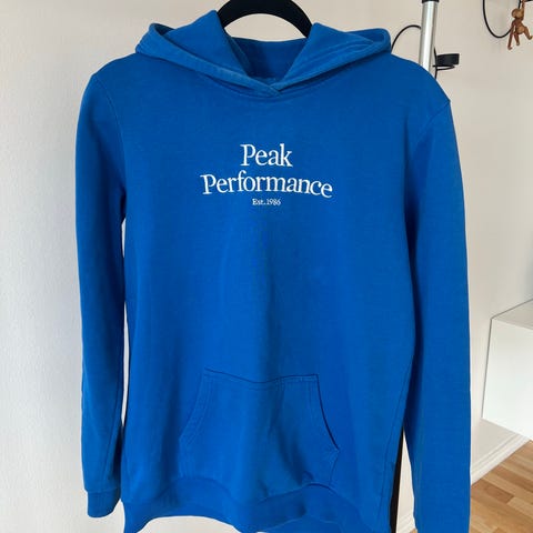 Peak Performance hettegenser for barn i størrelse 170. Hvit farge, laget av bomull. Genseren har hette, ribbekanter og kengurulomme foran. Diskré Peak Performance-logo med «Est. 1986» på brystet. Passer til hverdagsbruk og fritidsaktiviteter.