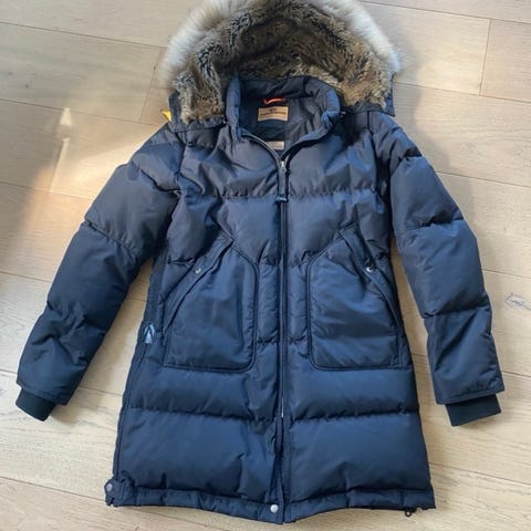 Jakken er svart og fylt med dun. Den har hette med pelskant, gjennomgående glidelås i front og store frontlommer med klaff. Elastiske mansjetter i ermene gir bedre isolasjon. Yttermaterialet fremstår som slitesterkt og egnet til bruk som ytterjakke i kaldt vær.