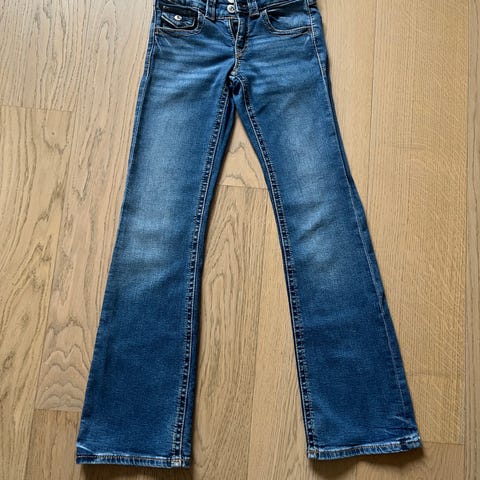 Jeans fra HM str. 152 selges rimelig. Bootcut og lavt liv. Justerbart strikk i livet. Pent brukt.