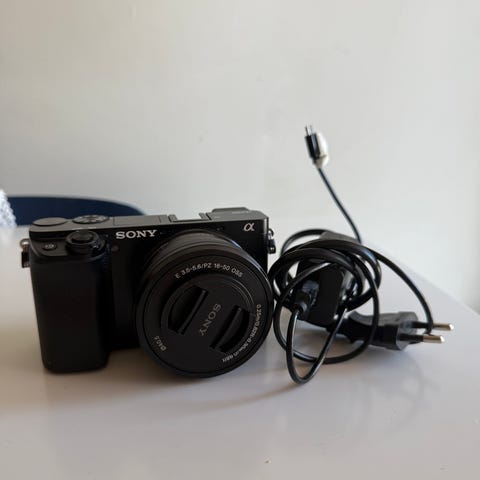 Sony a5100 kamera hvit med 16–50mm objektiv
