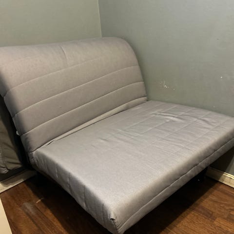 Grei enkeltseng med ben gis bort. Vært brukt som gjesteseng.