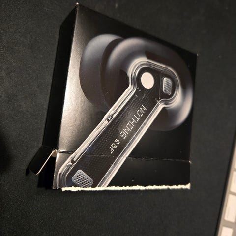 Pent brukte Nothing Ear 2024-modellen. Grei lyd for pengene, men ikke mine favoritter. Selges derfor.
