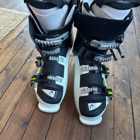 Head Vector alpinstøvler i svart med gule detaljer. Støvlene har fire justerbare spenner og powerstrap øverst for god tilpasning rundt leggen. Sålen har godt grep for trygg gange på snø og is. Passer til vanlig alpinbinding for skikjøring i bakke. Selges fordi di har blitt litt små. Er veldig gode sko og di var en cirka 8-9 tusen nye. Pris og frakt kan diskuteres.