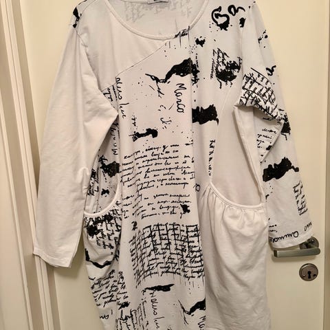 Nydelig t-skjorte kjole fra Blackmilkclothing, med motiv laget av kunstner Marina Mika. Den er blitt for stor for meg og er lite brukt. Størrelse XL, men kan også passe mindre størrelse hvis en ønsker den mer romslig. Denne er Limited og selges ikke nå.