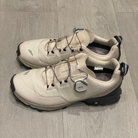 Disse ble dessverre for smale for meg, så er bare prøvd på en liten tur. Ellers veldig gode sko, godt grep i terrenget. Bruker nesten bare vivo- sko, veldig gode barfotsko.