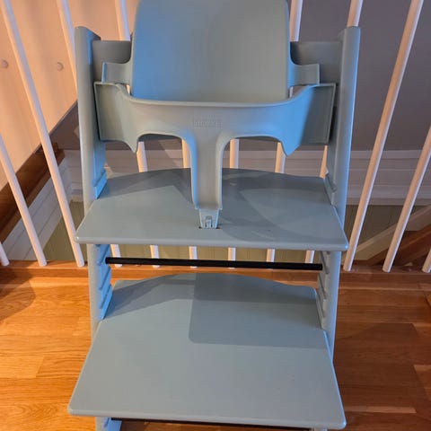 En fin Tripp Trapp stol med originalt Stokke-utstyr;
