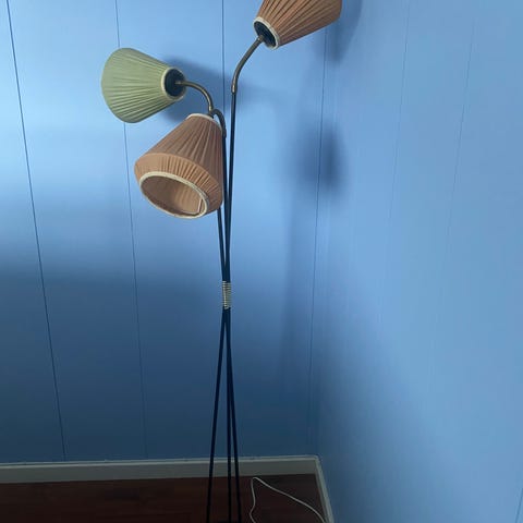 Eldre 3 armet stålampe av eldre modell.Fungerer og ser bra ut alder tatt i betraktning. Varen befinner seg i Eidsvoll kommune, selger er pensjonist uten internett så jeg formidler bare informasjon.