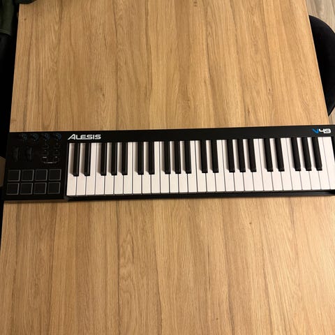 Alesis VI49 MIDI-keyboard med 49 tangenter i svart utførelse. Keyboardet har fullstørrelse tangenter, åtte trigger pads, dreieknapper og hjul for pitch bend og modulasjon. Egnet som kontroller til musikkproduksjon og innspilling via datamaskin eller annet MIDI-utstyr.