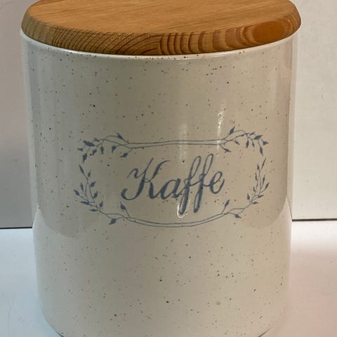 Liten krukke i keramikk fra finske Pentik til salgs for 250 kr. Med kork.