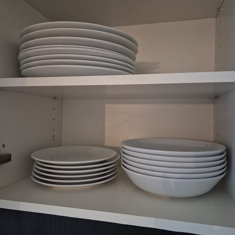 IKEA tallerkener og boller i ulike størrelser og fasonger. Gir bort alt som er på bildet - flate tallerkener ( 6 stk. store og 6 stk. mindre) og 5 stk. dype tallerkener i flere farger, blant annet lyserosa, svart og lys gul.