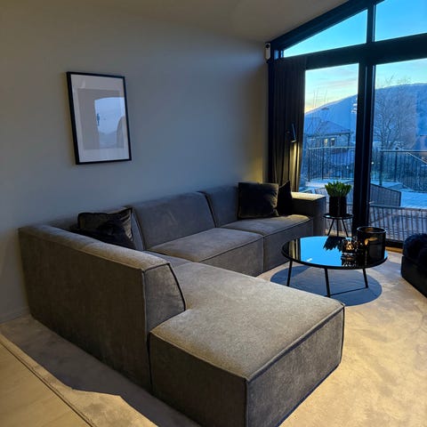 Quadrato modulsofa fra Skeidar med sjeselong og pall i tekstil Storm 02. Følger med pall som på bildet.