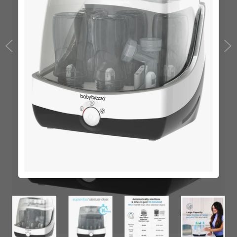 Baby Brezza Superfast Sterilisator Dryer flaskesterilisator for dampsterilisering og tørking av tåteflasker og tilbehør. Enheten har plass til flere flasker samtidig, med pigger for flasker i bunnen og avtakbar øvre hylle for smokker, lokk og mindre deler. Gjennomsiktig lokk gjør det mulig å se innholdet under bruk. Maskinen er i veldig god stand og blitt vedlikeholdt godt, selger den da vi ikkje har behovet lenger :) Nypris: 2199kr