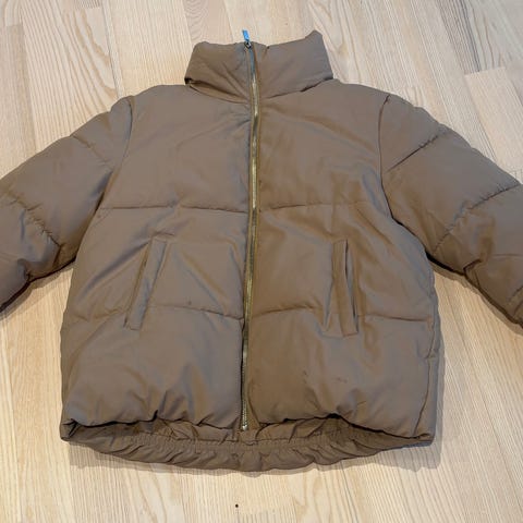 Vila jakke for dame i størrelse 42. Jakken er beige og laget i polyester. Den har quiltet mønster, trykknapper i front og sidelommer. Lengden går ned over hoftene, og jakken har hette og ribbestrikkede mansjetter. Passer som ytterjakke i overgangssesonger. Kan sendes mot porto