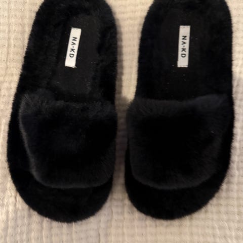 Sorte sko i størrelse 5 1/2 med åpen tå, lav hæl.