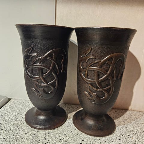 Frykt ei, selger 2 bukkehornskopper som gir en stilmessig helhet til drikkeopplevelsen.