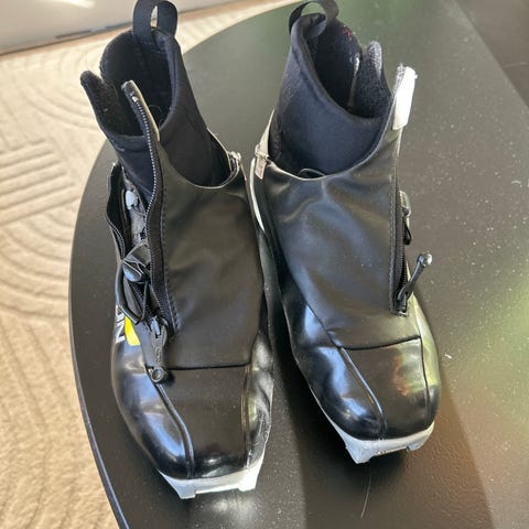 Salomon langrennsstøvler klassisk SLab Carbon 39. I den ene skoen er stoffet i hælen delvis løsnet men det går an å bruke skoen.