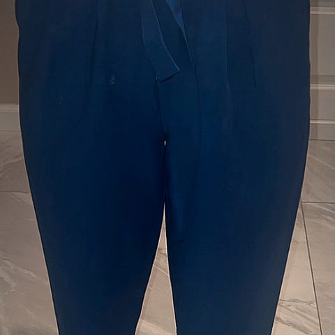 Zizzi bukser for dame i størrelse 44. Buksene er blå og laget i viskose. Modellen har høyt liv med belte og ben som smalner av nedover. Pent brukt, ble ikke helt venn med akkurat denne sjatteringen av blå.
