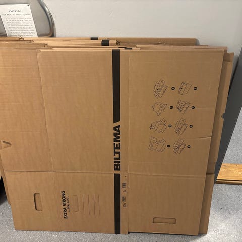 10 flytte esker selges. Kan hende noen har sprukket ved hjulene men kan fint brukes. Er 280 liter. 1 koster originalt 250kr.