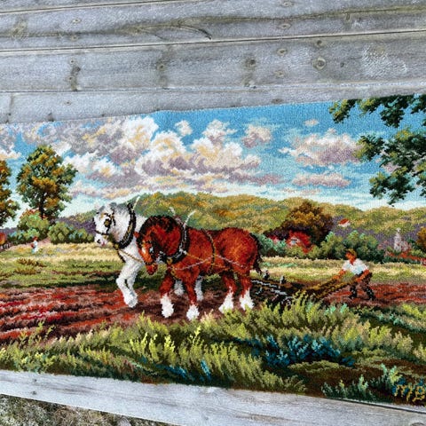 Sånn du legger i stol.Eller du kan bruke som en løper.Den er nyvasket, men ikke strekt eller strøket.Jeg kan sende med Post Nord porto blir 69kr.
