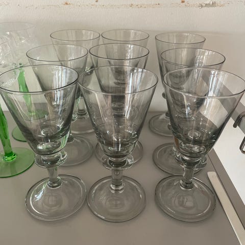 3 hele og fine tangen rødvinsglass. Sotet. 16,5 cm høye. Selges samlet
