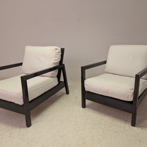 Selger 2 stk IKEA lillberg lenestoler, designet i minimalistisk stil med justerbar rygg og myke seter.
