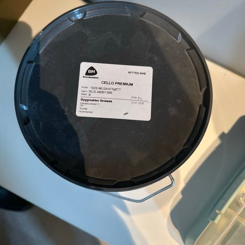 Jeg elsket fargen, men hjemme på veggen ble det dessverre ikke slik jeg så for meg. Det krasjet med resten av stilen, dessverre. Jeg var skråsikker, og kjøpte 6L med en gang. Nå håper jeg noen andre kan få gleden av fargen.