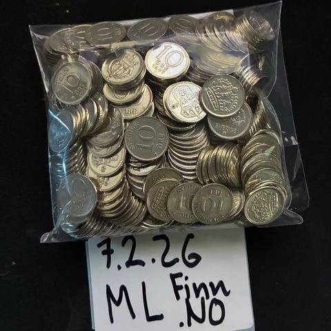 Selger en samlet Finland-samling bestående av både myntsett og album med eldre markkaa-mynter.