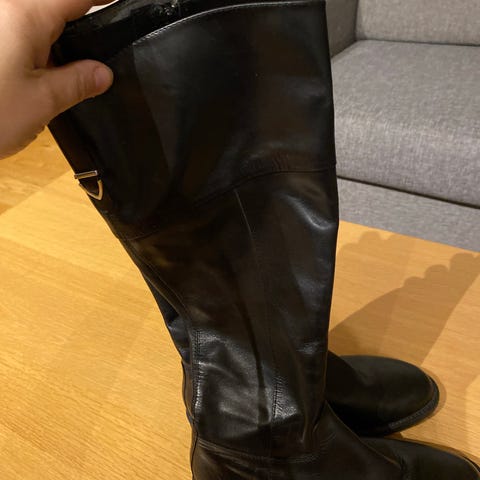 Stockholm Design Group støvler i størrelse 36. Høye svarte støvler i skinn med glidelås på siden. Såle i gummi med mønster for bedre grep. Passer til bruk i hverdagen og til mer pyntede anledninger i kjøligere vær.