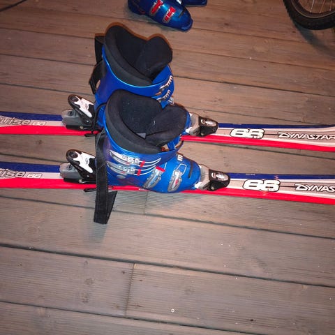 Elan twin tipp alpinski ski er kule gule på sålen