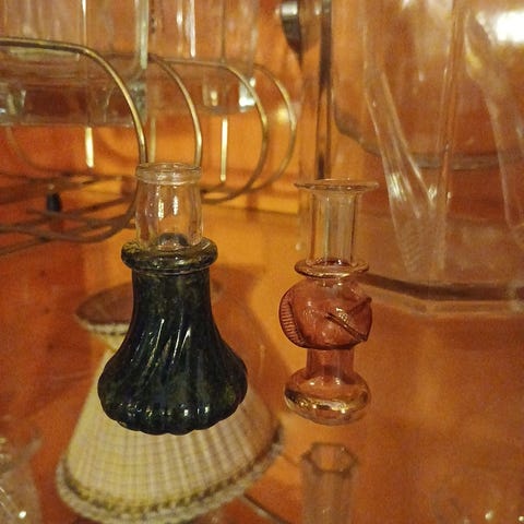 Glassvaser i ulike str. Selger noen av samlingene mine. Litt synd, men kan ikke samle på alt. Selges til ett godt hjem. Skålen er mest sannsynlig til salt og pepperbøsse jeg ikke har funnet. Noen skader må påregnes.