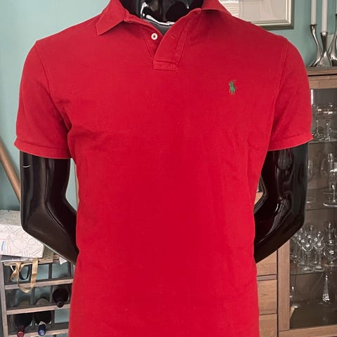 Ralph Lauren poloskjorte for herre i størrelse L. Skjorten er oransje og laget av bomull. Klassisk polosnitt med krage og knappestolpe. Liten brodert logo på brystet. Passer til hverdagsbruk og enkle, pene antrekk.