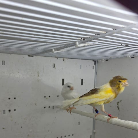Et par fine mosaic kanari søker hjem