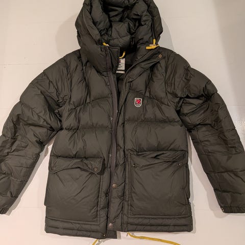Fjällräven 1974 Expedition Series vinterjakke for herre i størrelse M. Jakken er grønn og fylt med dun for god isolasjon i kaldt vær. Modellen har hette og gjennomgående vatterte kanaler som bidrar til jevn varmefordeling. Ytterstoffet er laget for bruk i vinterforhold, og jakken egner seg til hverdagsbruk og utendørsaktiviteter i kaldt klima.
