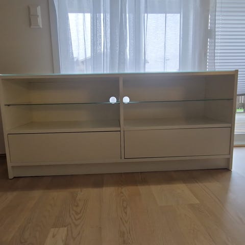 Byås TV-benk, høyglans hvit gis bort! Små riper.
