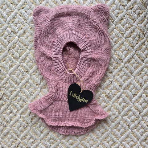 Strikket i soft silk mohair og merino garn. Som gir et mjukt og behaglig lue. Kanten rundt ansiktet er bare strikket i merino, slik at silk mohair ikke er opp mot øynene.