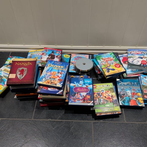 Samling med diverse DVD filmer bestående av flere barnefilmer og komedier. Blant titlene i samlingen er blant annet tegnefilmer med Tom og Jerry, Disney Junior med Mikke Mus og venner, samt familiefilmer og komedier som «Grown Ups 2», «Over hekken» og andre lignende titler. DVD-ene er i standard DVD-format og egner seg for familier og barn som ønsker et utvalg av både animasjonsfilmer og humorfilmer.