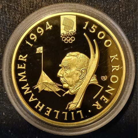 Flott gullmynt fra OL på Lillehammer i 1994.