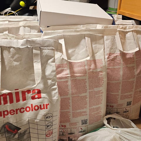10 stk sekker Ultipro frostsikker fliselim selges. 15 kg pr sekk, farge hvit.