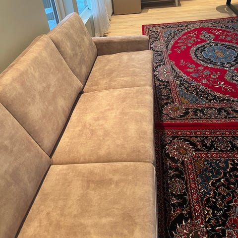 Satt på 10 cm høye ben i eik, gjør sofaen mere stilren og høyere enn originalen.