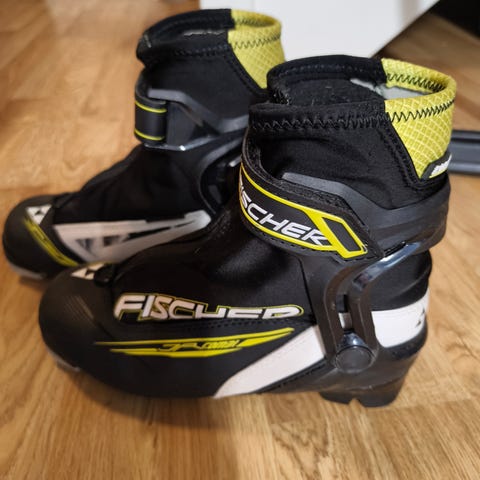 Fischer skistøvler for langrenn i svart og gul farge. Støvlene har høy ankelstøtte med hælkapper og borrelåsreim øverst for bedre stabilitet. Glidelås i front beskytter snøringen og gir ekstra isolasjon. Størrelse er 36. Egnet til bruk med langrennsbindinger som passer denne typen Fischer-støvler.