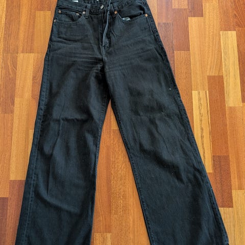 Levi's Ribcage Straight jeans for dame i blå denim. Buksen har rett passform med høy midje og klassisk 5-lommers design. Størrelse S med livvidde W28. Materiale i denim (bomullsjeansstoff). Buksen har et lite rødt merke på det ene buksebenet, se bilde. Merke synes nesten ikke.