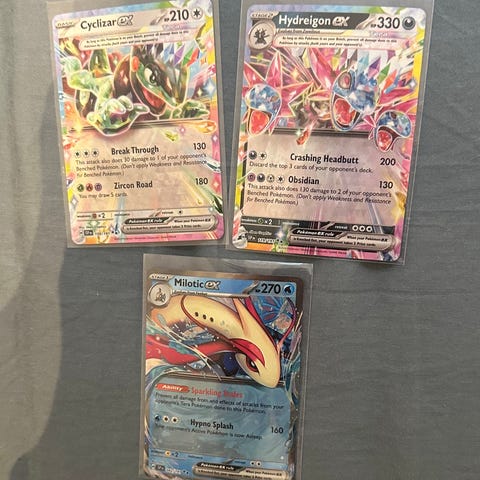 Im selling a small bundle of 4 Pokemon cards with popular Pokemon like Charizard and Zacian. Cards are in NM condition. Just write a message for more pictures or questions 😊