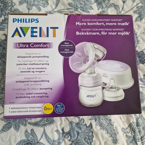 Philips Avent brystpumpe og flaskevarmer i hvit utførelse. Settet inneholder elektrisk brystpumpe med tilhørende flaske og deler, samt elektrisk flaskevarmer til oppvarming av morsmelk eller morsmelkerstatning i tåteflasker. Egnet til bruk hjemme for oppbevaring og oppvarming av melk til spedbarn. Utformet for standard Philips Avent-flasker.