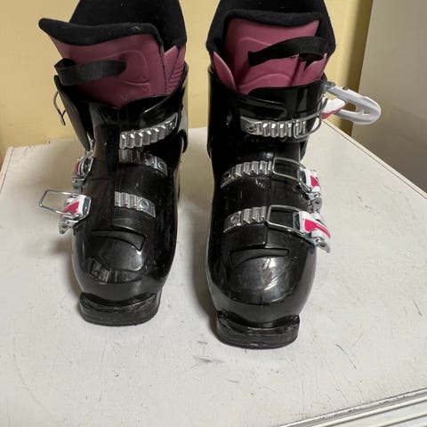 Rossignol Comp J3 alpinstøvler i størrelse 22.5 (sålelengde 265 mm). Støvlene har hard ytterskall i plast og myk, polstret innerstøvel for komfort. Modellen har tre justerbare spenner i metall/plast for god tilpasning rundt fot og legg. Fargekombinasjon svart med rosa og hvite detaljer. Egnet som alpinstøvler til barn/unge.