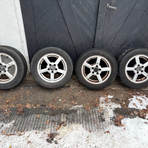 Felger med piggdekk selges, brukt til Volvo V70 1-2 sesonger. Ene dekket har skum.