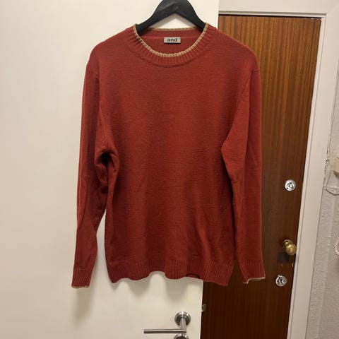 Har også en lik rød genser til salgs, ved kjøp av begge oppnås kvantumsrabatt.