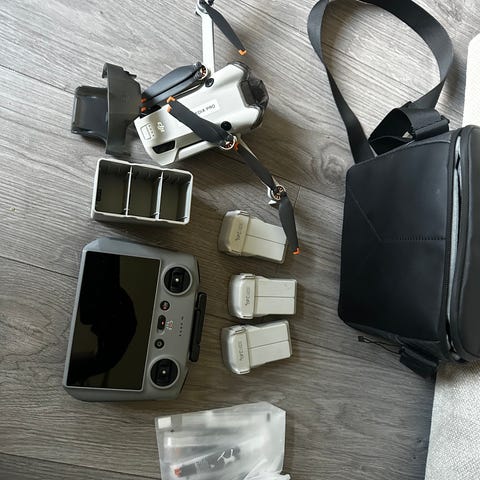 Selger en DJI Phantom 4-drone med mye ekstrautstyr. Dette er en klassisk, velkjent quadcopter med 4K-kamera, gimbal og stabilisert filmopptak – egnet for luftfoto, video og hobbybruk.
